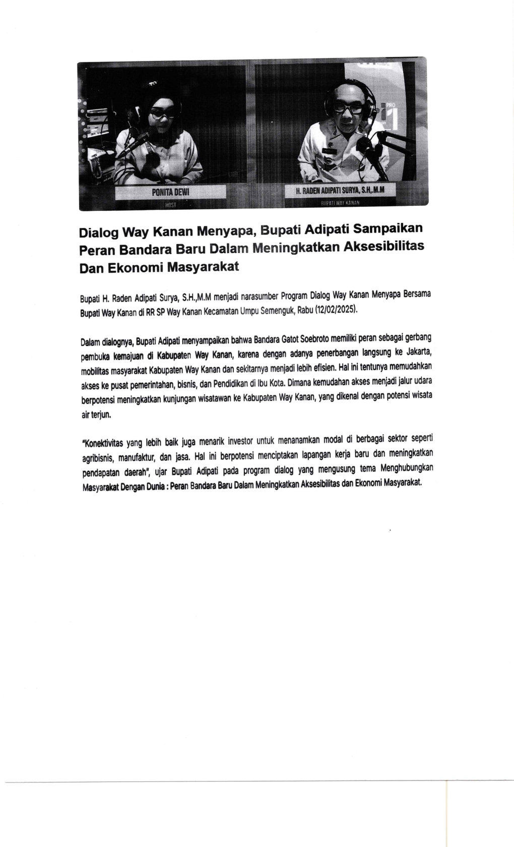 Dialog Way Kanan Menyapa, Bupati Adipati Sampaikan Pera Bandara Baru Dalam Meningkatkan Aksesibilitas dan Ekonomi Masyaratak